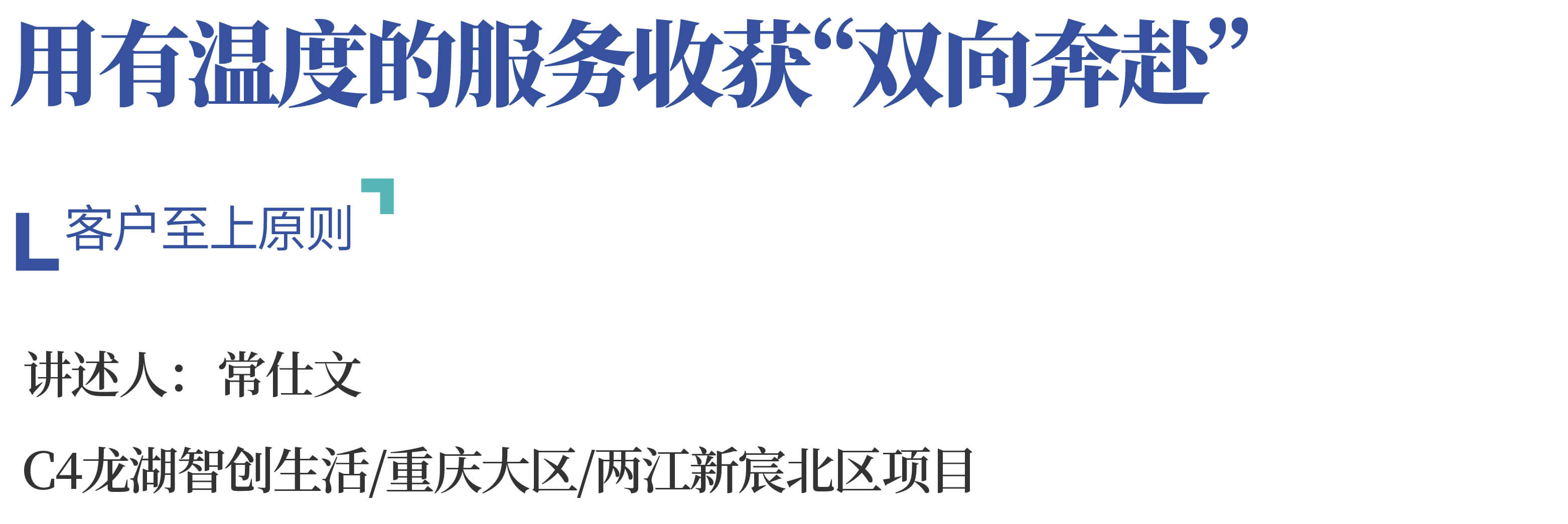 现在,我在每一个新小区交付前,都会和团队强调,多去小区走走,当成自己的房子一样吹毛求疵,你觉得不好,客户肯定也会不舒服,要把客户作为一切工作的出发点,问题越难就越要为客户考虑,才能从根本上解决许多工作中的问题,才能让客户真正理解J9九游会、信任J9九游会。