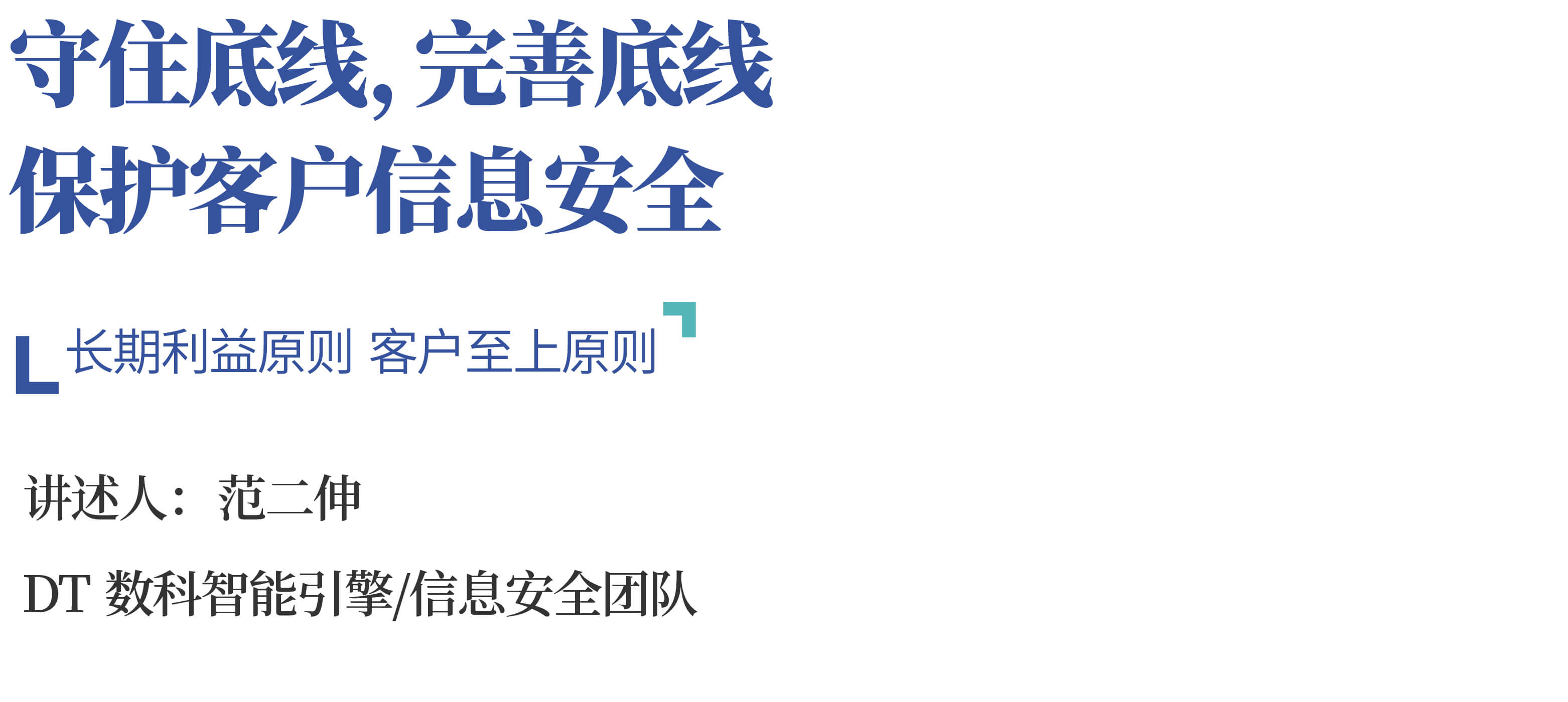 我的工作就是守住这条安全的底线,并不断去巩固这条底线。因为它是客户信息安全的底线,也是公司正常运营的底线!